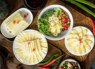 小竹筍制成菊花筍,涮火鍋、湯鍋,味尤佳。